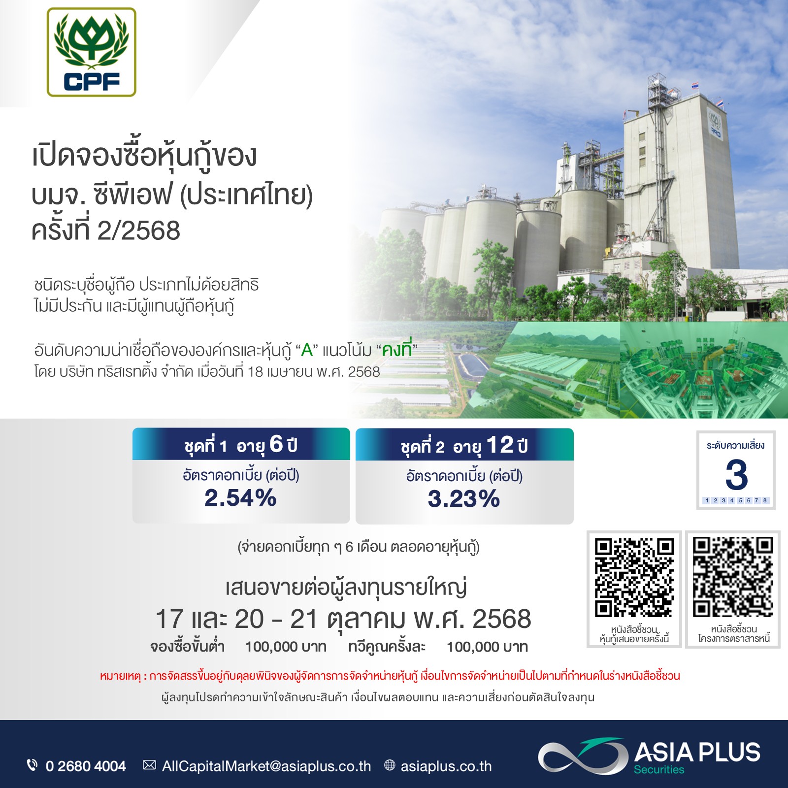เปิดจองหุ้นกู้ บริษัท ซีพีเอฟ (ประเทศไทย) จำกัด (มหาชน) - CPFTH