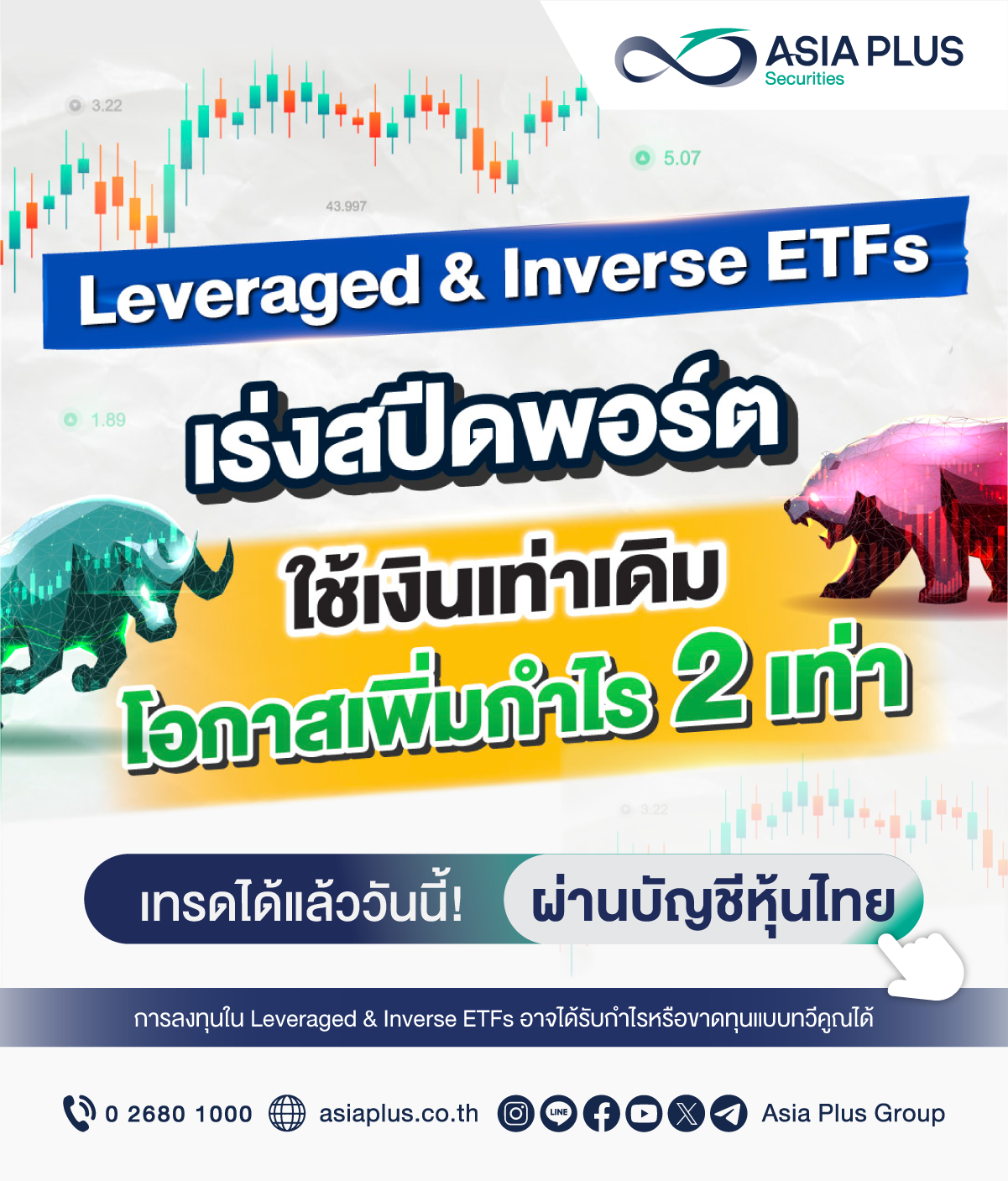 ศึกษาข้อมูล Leveraged และ Inverse ETFs เพิ่มเติมได้ที่ www.set.or.th/th/market/product/etf/leveraged-and-inverse-etf