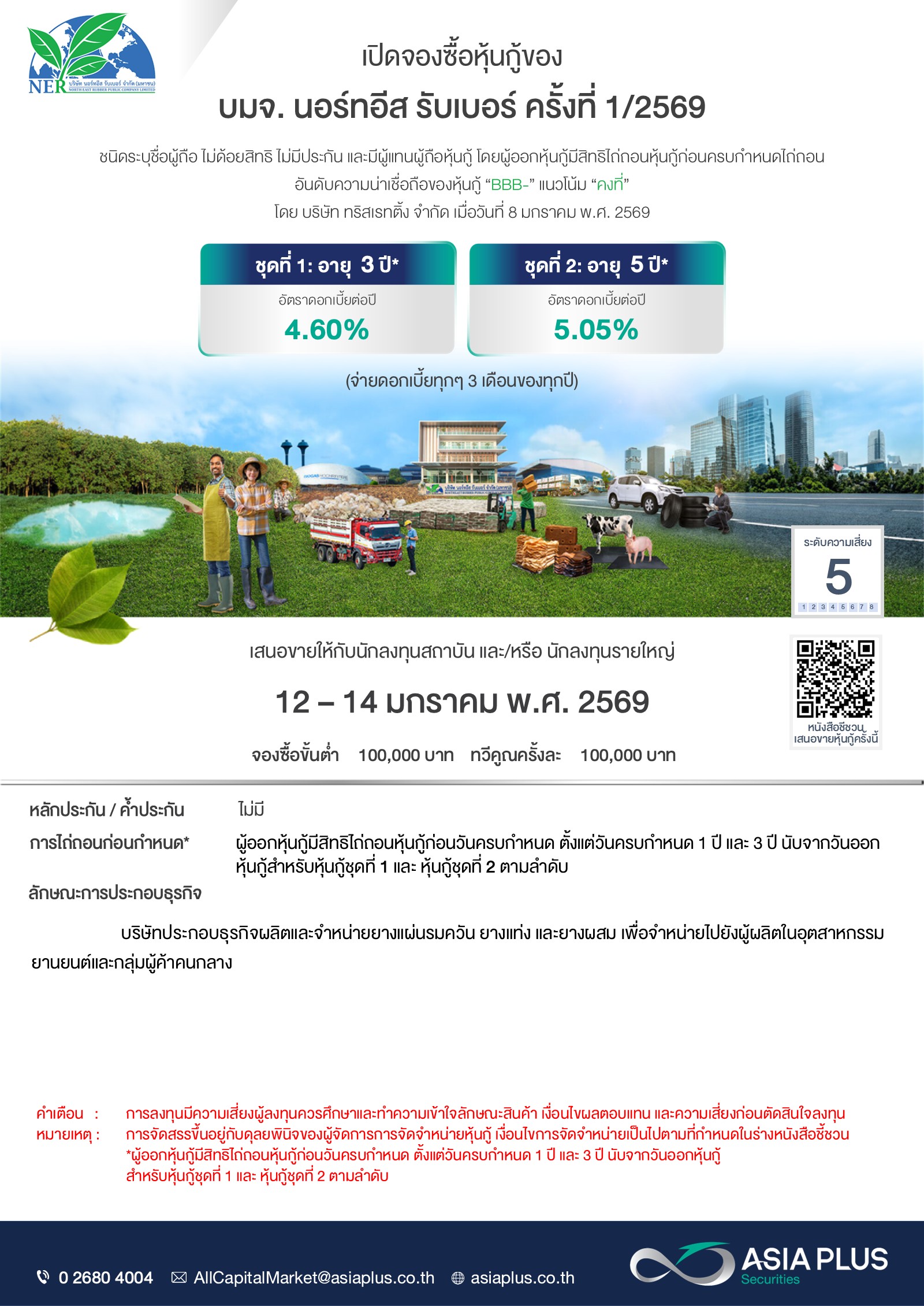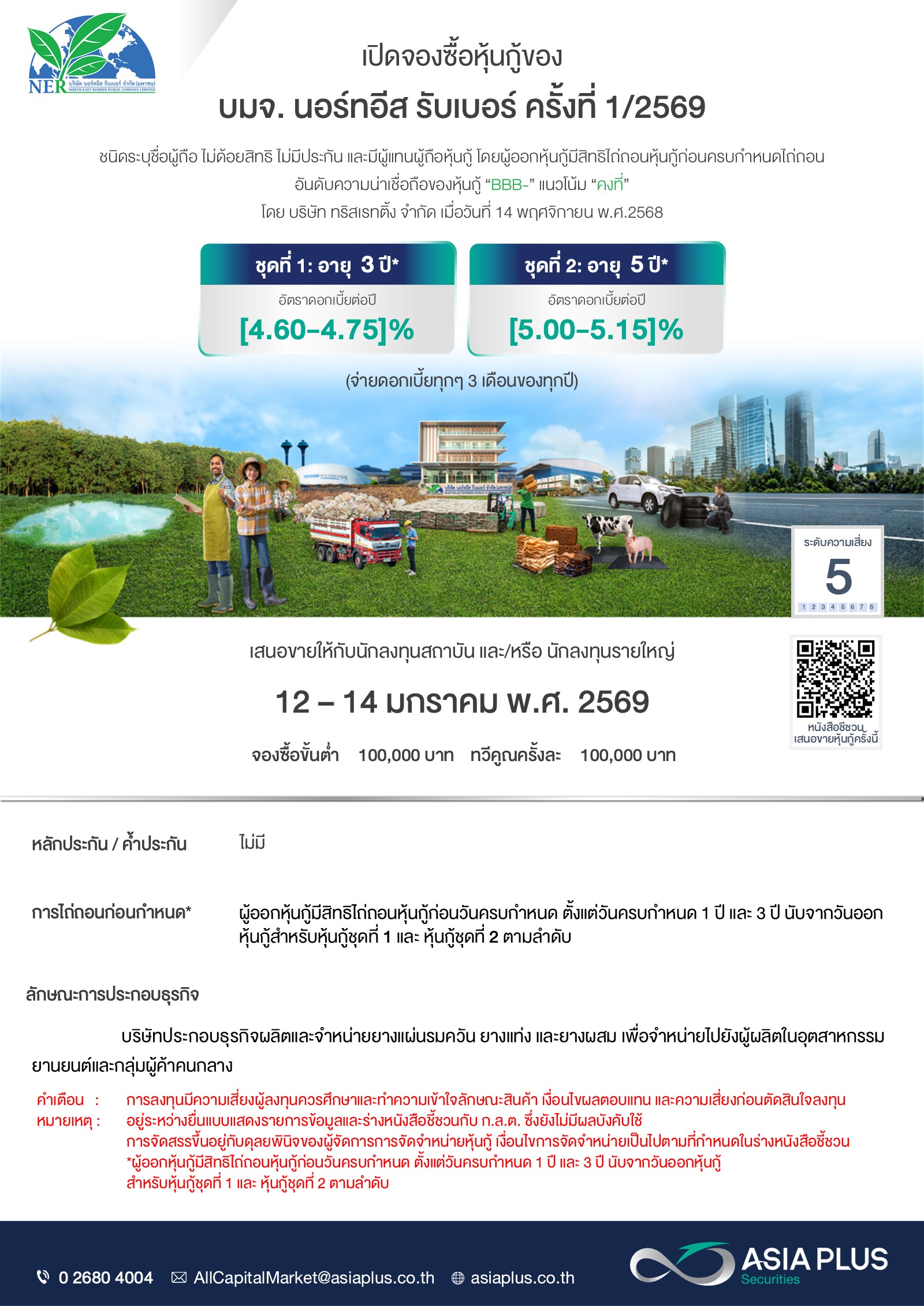 เปิดจองหุ้นกู้ บริษัท นอร์ทอีส รับเบอร์ จำกัด (มหาชน) - NER