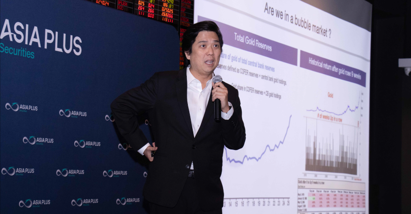 บริษัทหลักทรัพย์ เอเซีย พลัส จำกัด โดยทีมนักวิเคราะห์กลยุทธ์การลงทุน พบปะสื่อมวลชนเพื่ออัปเดตภาพรวมเศรษฐกิจ และสถานการณ์การลงทุนในไทยและต่างประเทศ พร้อมอัปเดตผลิตภัณฑ์การลงทุนที่น่าสนใจ ประจำไตรมาส 4 เมื่อวันที่ 28 ตุลาคม 2568 ในงาน “นักวิเคราะห์พบสื่อมวลชน ไตรมาส 4/68” ที่สำนักงานใหญ่ บล.เอเซีย พลัส นำทีมโดยนักวิเคราะห์กลยุทธ์ สายงานวิจัย คุณเทิดศักดิ์ ทวีธีระธรรม กรรมการบริหาร, คุณภราดร เตียรณปราโมทย์ ผู้อำนวยการ ฝ่ายวิจัย พร้อมด้วยคุณบำรุงพงษ์ ชีวธนากรณ์กุล ผู้ช่วยกรรมการผู้อำนวยการและ คุณลัพธ์พร ปานะกุล ผู้อำนวยการฝ่ายผลิตภัณฑ์ตลาดรอง