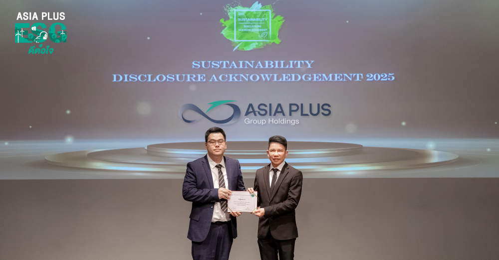 บริษัท เอเซีย พลัส กรุ๊ปโฮลดิ้งส์ จำกัด (มหาชน) ได้รับ รางวัลการเปิดเผยข้อมูลความยั่งยืน (Sustainability Disclosure Acknowledge) ประจำปี 2568...